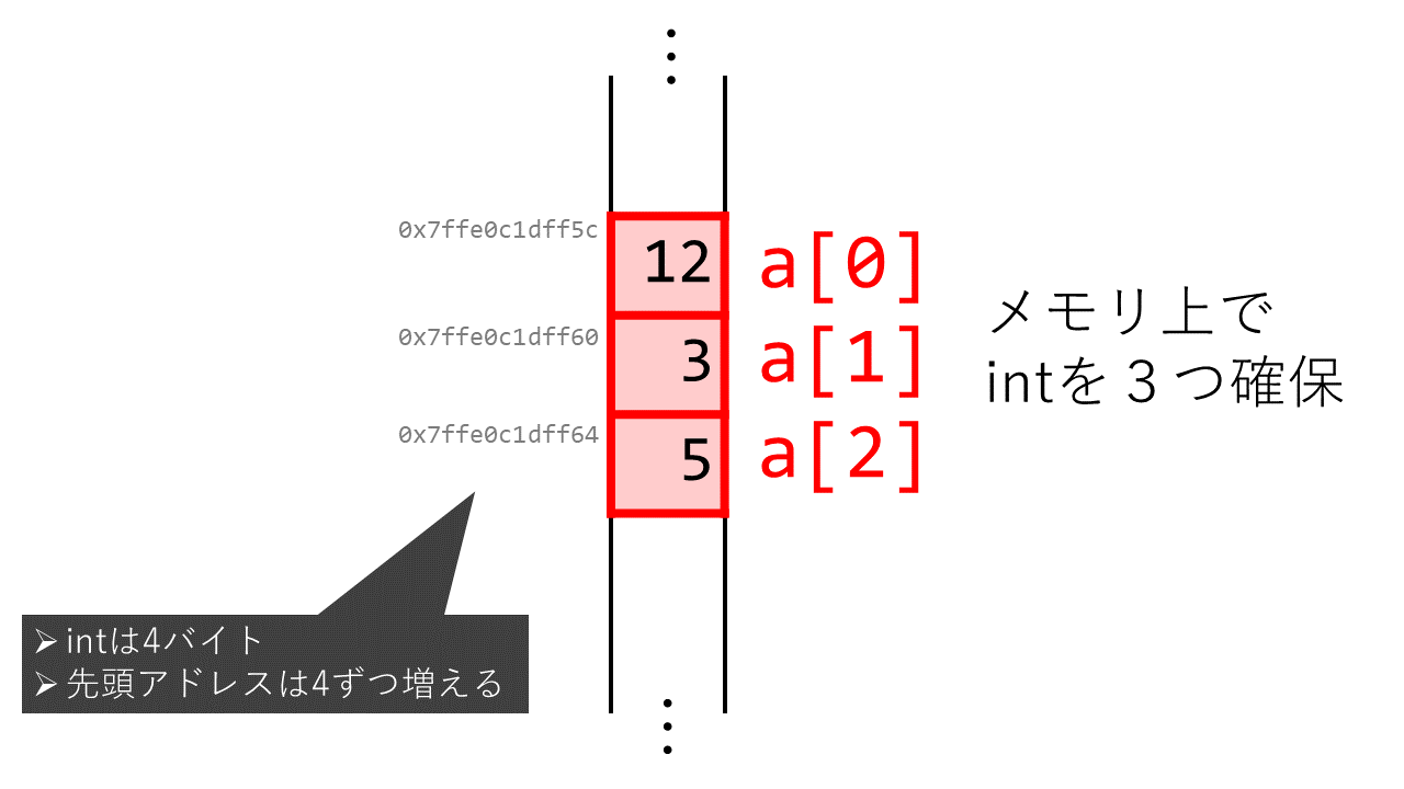 注意として、この宣言の段階では明示的に変数名を書かなくても大丈夫です。すなわち、int a